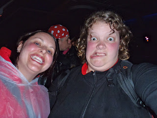 This is us waiting in the pouring rain for the Peter Pan Flying ride. Worth it. Rain definitely added this new dimension to things. As you walked around in your soaking wet shoes, and watched the water pile up everywhere, it had a magical feel to it. Mind you, I'd take sun at Disneyland anyway over rain.